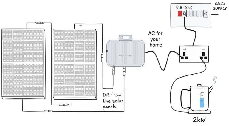 - Plug-in solar is simple: one or two panels, a microinverter, and a plug. Sunlight hits the panels, the microinverter converts DC to 230V AC, and the plug feeds it into your home circuit.