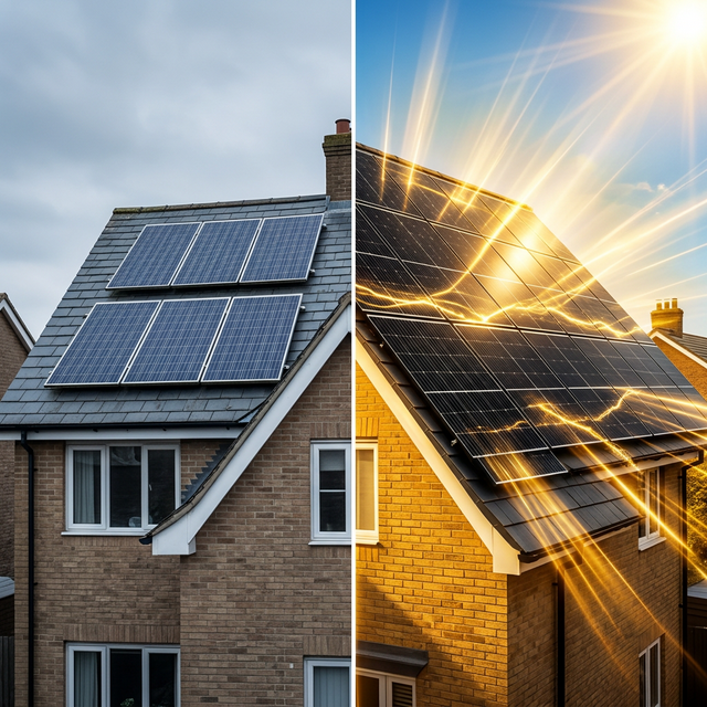 - Adding a £300 battery doubles your savings — capture 90% of generation instead of 40%.